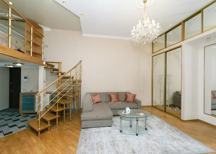 The 0-room Stylish Two-Level Flat 2 Min From Khreschatyk lies a 14-minute walk from Hetman Bohdan Khmelnitsky Monument and just a 5-minute stroll from Khreshchatyk tube station.